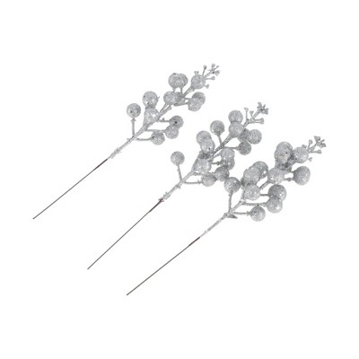 Unique Bargains Christmas Artificial Plant Simulated Cherry Cuttings Metal Plastic Foam 7.9"x2" 3 Pcs
