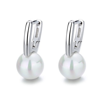 Women's 925 sterling silver earrings, featuring selected AAA+ grade white freshwater cultured pearl pendants.
