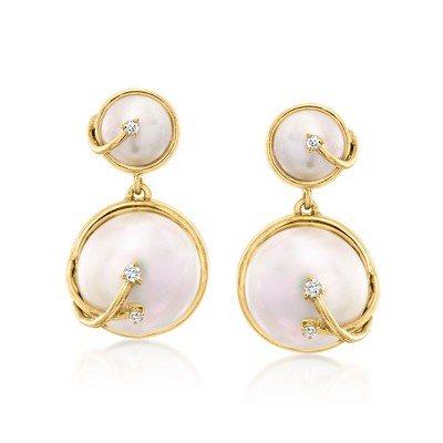Ross-Simons 8.5-9mm Cultured Pearl Drop Earrings in 14kt Yellow Gold