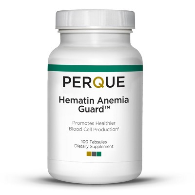 PERQUE Hematin Anemia Guard – Complete Energized Iron Supplement with B12, Vitamin C & Folic Acid – 100 Tabsules