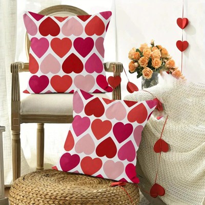 Lomsoe 2pcs Valentines Pillow Covers, Pink Love Heart Throw Pillows Case, Farmhouse Outdoor Decor for Home Sofa Bed.
