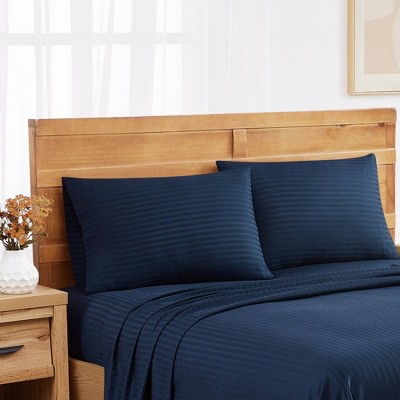Royal Velvet Standard Signature Dobby Stripe Pillowcaase Pair Navy