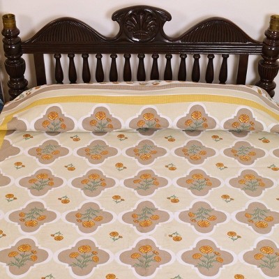 Mela Artisans Ivory and Taupe Cotton Single Bed Sheet | Twin Bed Size