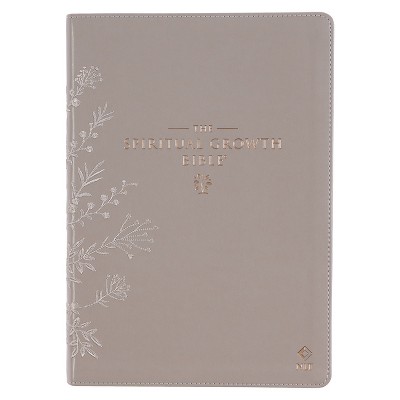 The Spiritual Growth Bible, Study Bible, NLT - New Living Translation Holy Bible, Faux Leather, Taupe Embroidred Floral - (Leather Bound)