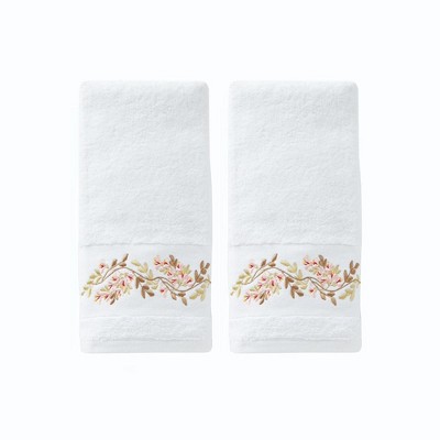 Saturday Knight Ltd Misty Floral Embroidered Bath Hand Towel Set - 2 Piece - 16x26", White