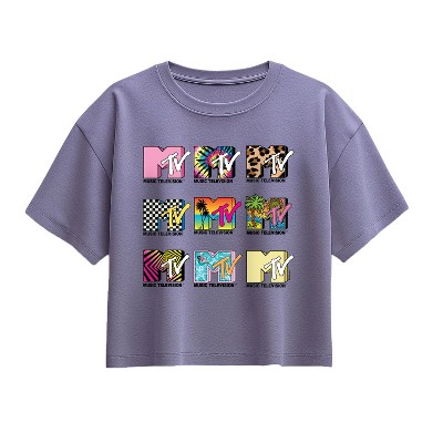 Girls' - MTV - MTV Top Logo Grid Short Sleeve Boxy Graphic T-Shirt