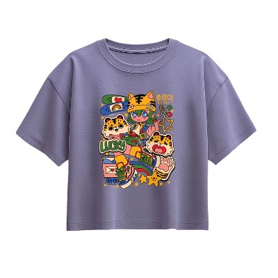 Girls' Instant Message Tiger Ramen Short Sleeve Boxy Graphic T-Shirt - Periwinkle - X-Large