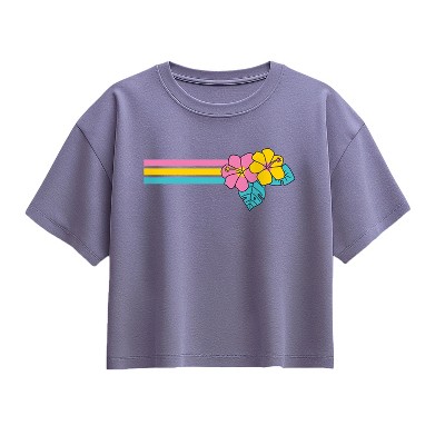 Girls' - Instant Message - Hibiscus Stripes Short Sleeve Boxy Graphic T-Shirt