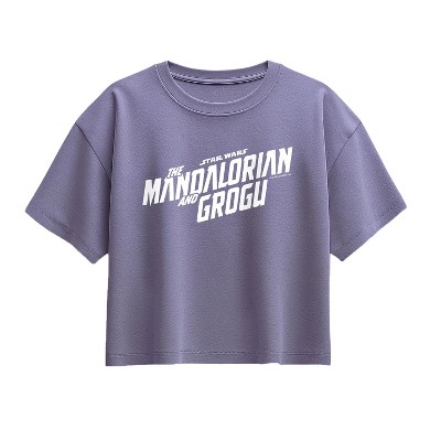 Girls' - The Mandalorian - Mando Grogu Stickers Short Sleeve Boxy Graphic T-Shirt