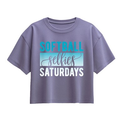 Girls' - Instant Message - Sofball Selfies Saturdays Short Sleeve Boxy Graphic T-Shirt
