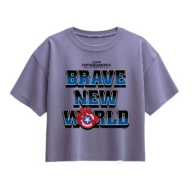 Girls' Captain America Brave New World Short Sleeve Boxy Graphic T-Shirt - Periwinkle - Large