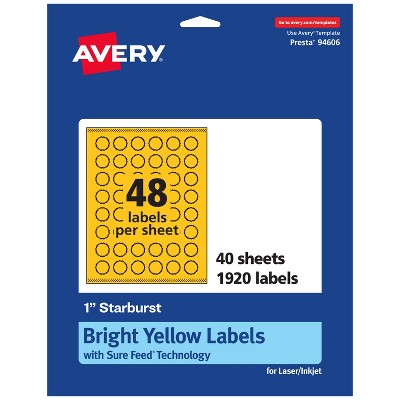 Avery Bright Yellow Paper Labels, 1" Starburst