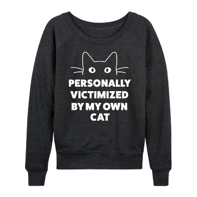 Women's - Instant Message - Personally Victimized By My Own Cat Lightweight French Terry Wide Neck Long Sleeve Graphic Shirt