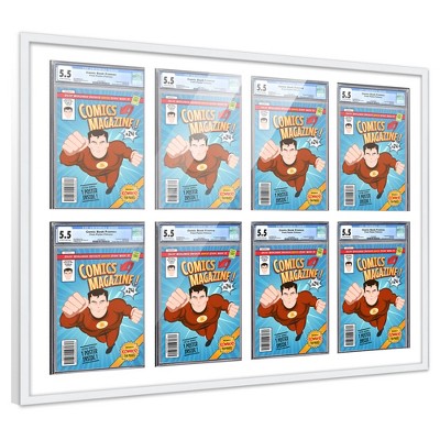 PosterPalooza | Comic Book Frame for 8 Graded Comics - White Wood with White Mat Comic Frame - 39x30.5