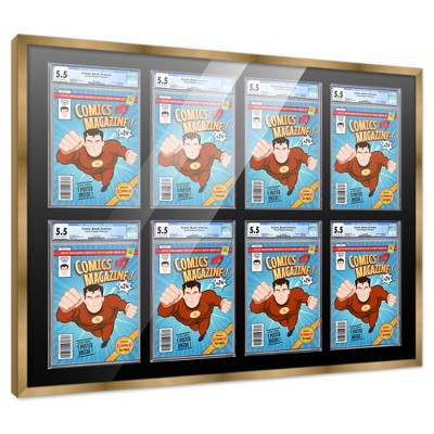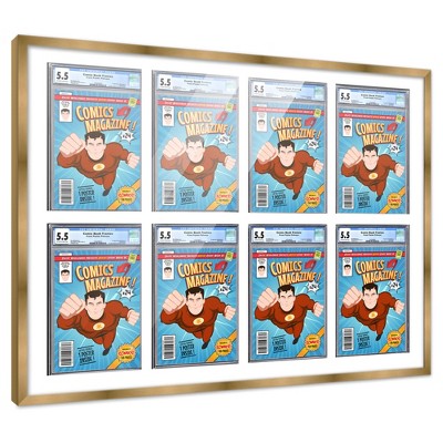 PosterPalooza | Comic Book Frame for 8 Graded Comics - Bronze Wood with White Mat Comic Frame - 39x30.5