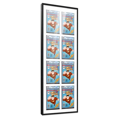 PosterPalooza | Comic Book Frame for 8 Graded Comics - Black Wood with White Mat Comic Frame - 21x58.5