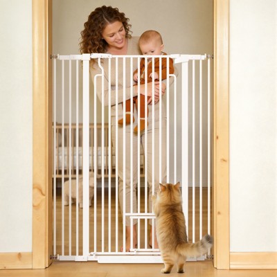 Extra Tall Pet Gate – 53-Inch Baby Gate with Adjustable Cat Door for Stairs, Doorways, Hallways, Durable Dog Gate for Toddlers and Pets