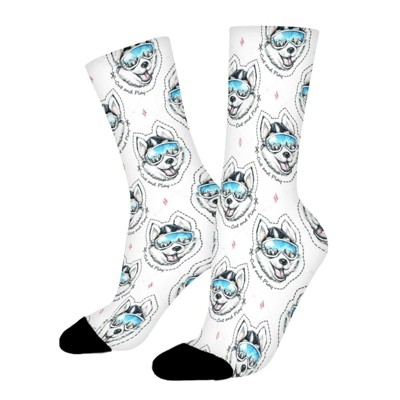 Skier Husky Dog Women Printed Crew Socks Funny Funky Socks Soft Polyester Novelty Gifts for Artists Men