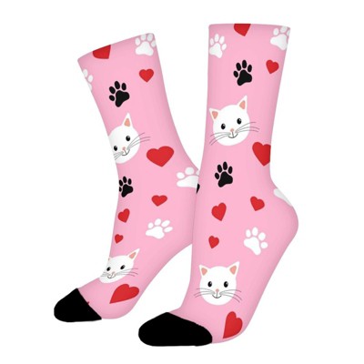 Pink Cat Dog Women Printed Crew Socks Funny Funky Socks Soft Polyester Novelty Gifts for Artists Men