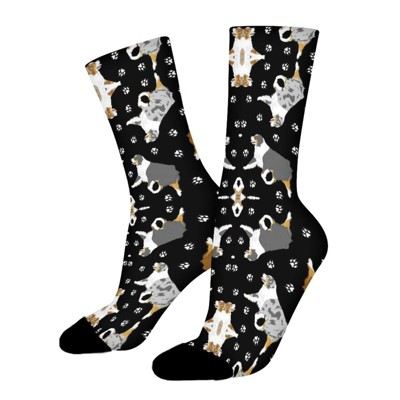 Australian Shepherds And Paw Women Printed Crew Socks Funny Funky Socks Soft Polyester Novelty Gifts for Artists Men