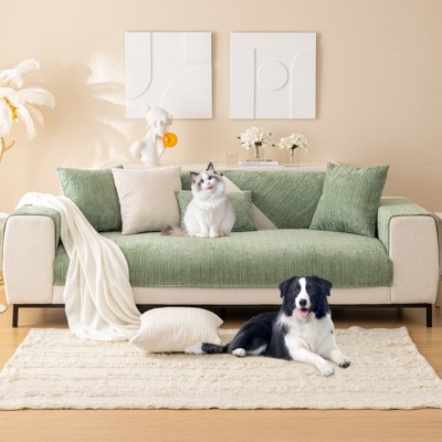 Bekrvio Pet-Proof Chenille Sofa Cover, Non-Slip Washable Sectional Couch Protector for Dogs & Cats, Fuzzy Furniture Slipcover