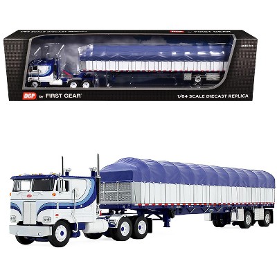 Peterbilt 352 COE 110" Sleeper and 53’ Wilson Flatbed with Wagon White with Blue Stripes 1/64 Diecast Model by DCP/First Gear