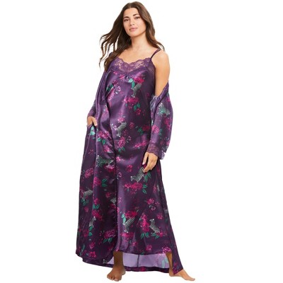 Only Necessities Long 2-Piece Cabbage-Rose Peignoir Set