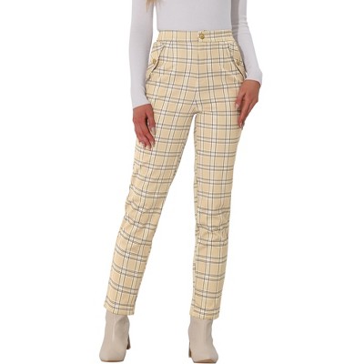 INSPIRE CHIC Women's Plaid Elastic Waist Casual Work Office Long Pants