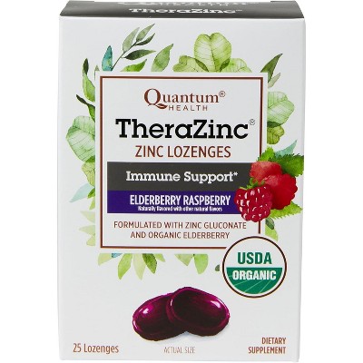 Quantum TheraZinc Elderberry Raspberry Lozenges, Zinc Immune Support & Soothing Throat Relief, 25 Count
