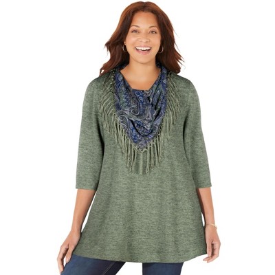 Woman Within 2-Piece Embroidered Poplin Tunic And Tee Set