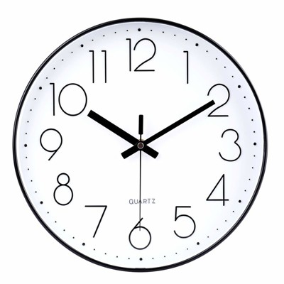 Aoibox Silent Non Ticking Quartz Wall Clock for Office Classroom School Modern Decorative Round Black