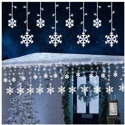 Itopfox 1 Set 17.22ft 264 LED Snowflake Icicle Lights 22 Drops 8 Modes Connectable Plug In Waterproof Christmas Lights for Indoor Outdoor Decor