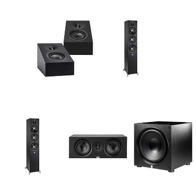 Elac DF53-BK - Debut 3.0 5.25" Floor Speaker - Black (Pair), ELAC DA43-BK Debut 3.0 - DA43-BK Atmos / On Wall speaker, and Elac PS350 Subwoofer