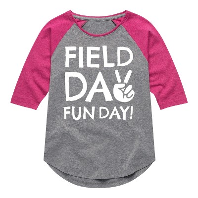 Girls' - Instant Message - Field Day Fun Day Peace Sign Shirt Tail Raglan Graphic T-shirt