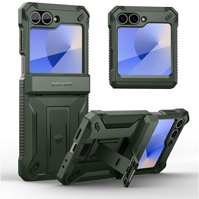 Dexnor for Samsung Galaxy Z Flip 6 Case with Stand & Hinge Protection & Front Screen Protector, Dual-Layer Rugged Bumper Case