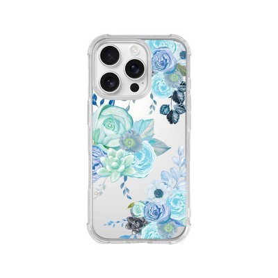 Centon iPhone 16 Plus 'Blue Flower Garden' Printed Case Tough Edge - Clear
