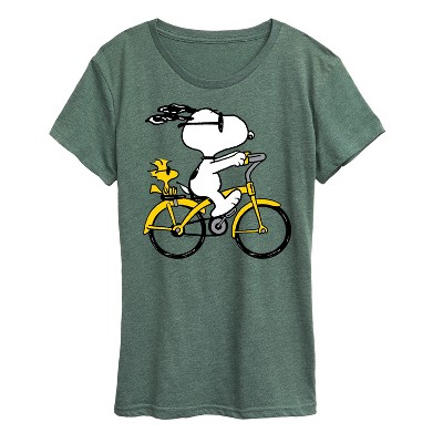 Women's - Peanuts - Snoopy and Woodstock Riding Bike Short Sleeve Graphic T-Shirt