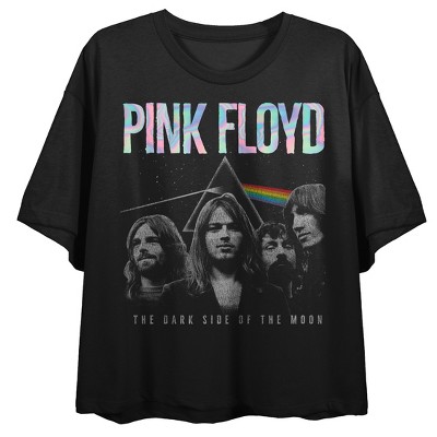 Pink Floyd Distressed Group Shot Prism on Black Short Sleeve Adult Crop T-Shirt