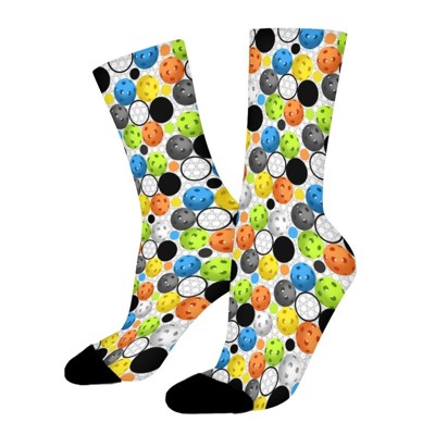 Colorful Pickleball Women Printed Crew Socks Funny Funky Socks Soft Polyester Novelty Gifts for Artists Men