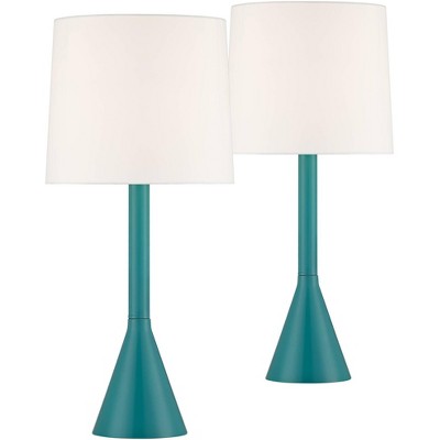 360 Lighting Mid Century Modern Table Lamps 24" High Set of 2 Aqua Metal White Drum Shade Living Room Bedroom House Bedside Nightstand Home
