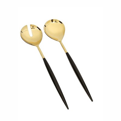 Classic Touch Set of 2 Shiny Gold Salad Servers with Neat Black Handles