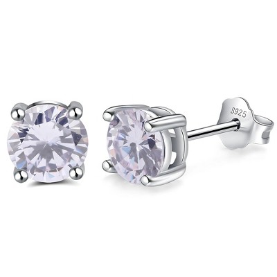 Birthstone Earrings for Women Solitaire Round Cubic Zirconia Sterling Silver Ginger Lyne Collection