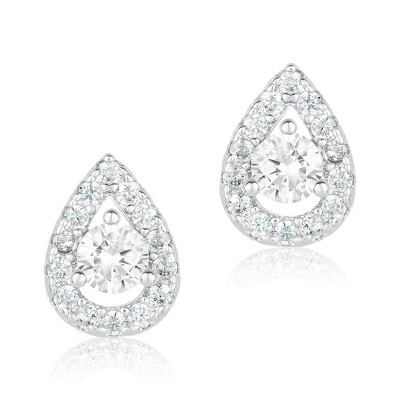 Adornia Rhodium Plated Pear Cut Halo Crystal Stud Earrings