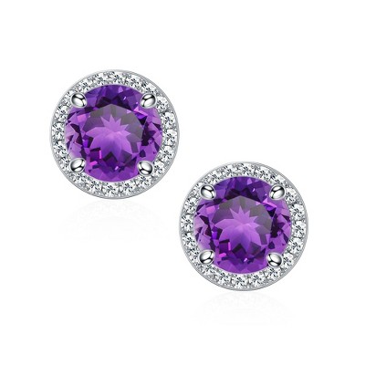 Turandoss S925 Sterling Silver Stud Earrings for Women, Month Birthstone Round Cartilage Earring, Birthday Valentine's Day Gifts for Women Wife Mom