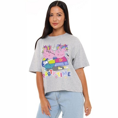 Women's Peppa Pig Mummy And Daddy Pig Party Time Boxy Cropped T-Shirt