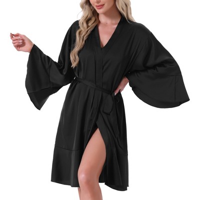 INSPIRE CHIC Women's Satin Trumpet Sleeves Ruffle Hem Silky Cover Up Tie Waist Bridal Party Wedding Bridesmaid Bathrobe