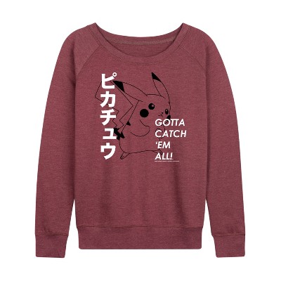 Women's - Pokémon - Pikachu Grid Lightweight French Terry Wide Neck Long Sleeve Graphic Shirt