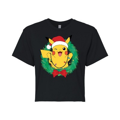 Women's - Pokémon - Pikachu Lights Wreath Cropped Graphic T-Shirt