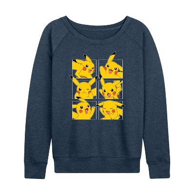 Women's - Pokémon - Pikachu Sled Lightweight French Terry Wide Neck Long Sleeve Graphic Shirt