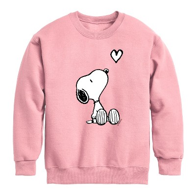 Boys' - Peanuts - White Snoopy Heart Graphic Long Sleeve Fleece Sweatshirt